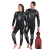 7 mm one-piece suit with rear YKK zip, stainless steel sliding tab, made in superelastic double-lined neoprene.